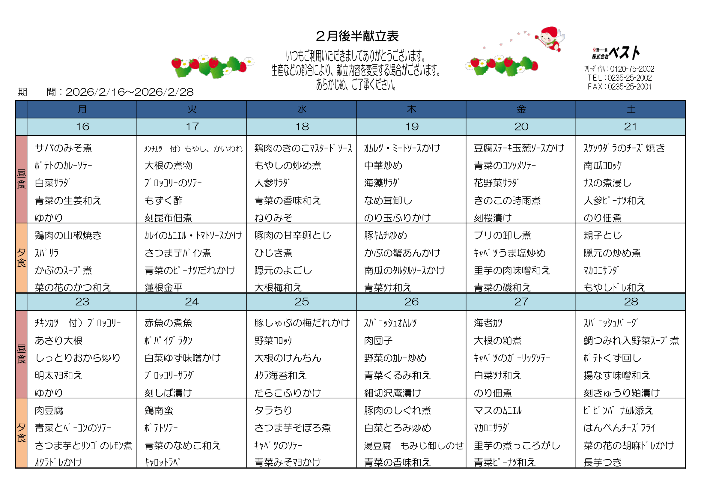 最新献立(2月後半分)
