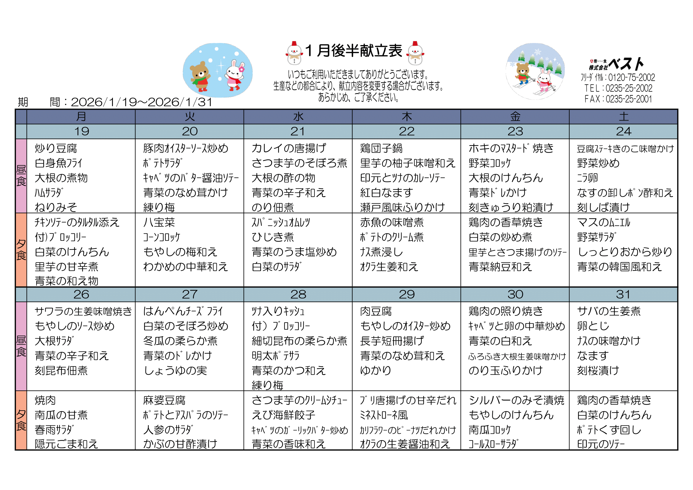 最新献立(1月後半分)