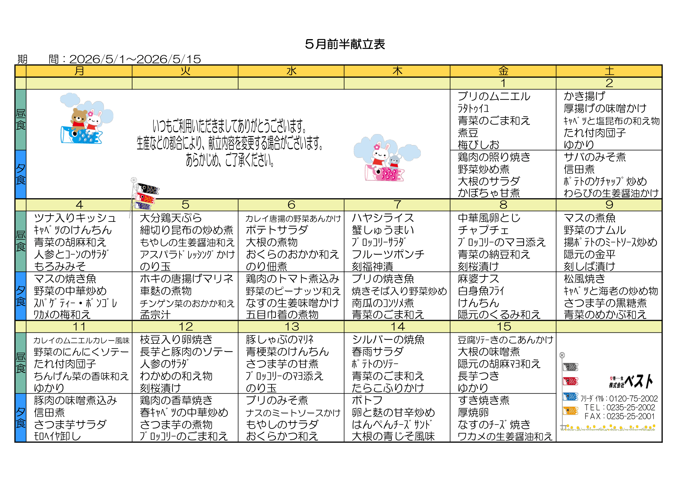 最新献立前半(4月前半分)