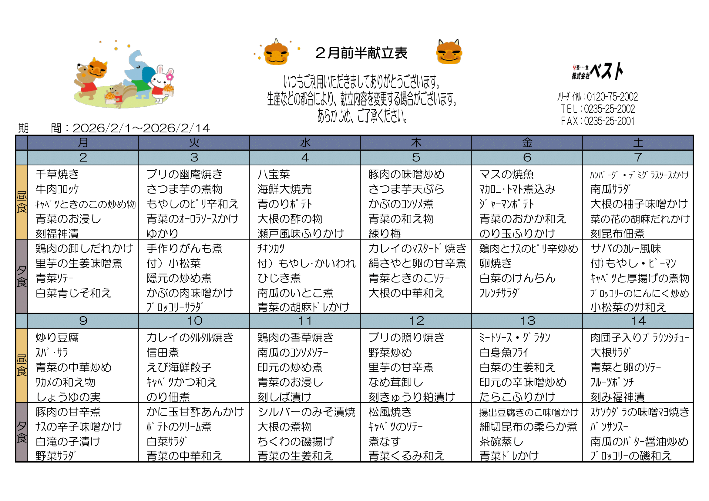 最新献立(2月前半分)